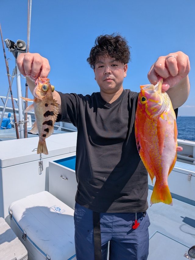 (キダイ)20~40cm 4~17匹 本日ご乗船の皆様暑い中お疲れ様でした 朝イチより沖メバルにアカイサキなど上がりましたがサバが多くなってきたのでポイント移動し、イサキの反応みられるも喰い今ひとつ・・・ 別ポイントに移動してからは魚種多彩にお土産キープ!! ・レンコダイ・イサキ・アカイサキ・沖メバル・キツネダイ・カサゴ・ウマズラハギ・ソーダガツオ・アジ ★明日は・キンメ・ムツ五目船にて出船確定しております まだまだお座席十分余裕あります 皆様のご乗船お待ちしております