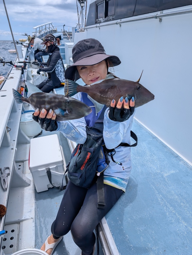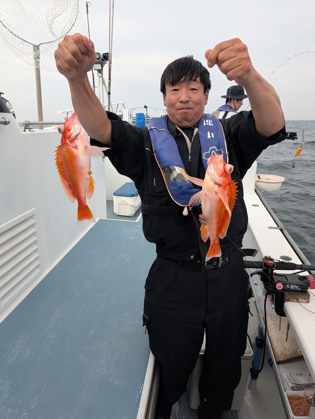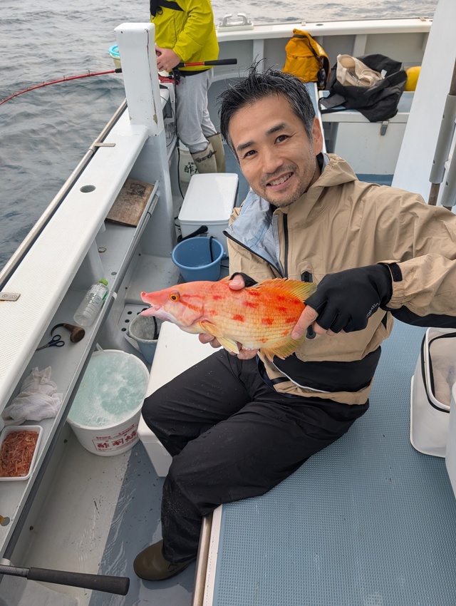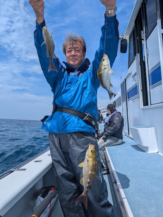 若潮、明日は中潮。 6月の出船時間は5:30出船。 6月からはイサキ釣り解禁、イサキ乗合も始まります。 いつもご覧いただきありがとうございます。 本日はカサゴ釣り、イサキ&甘鯛(2本立て)釣りなども出船。 イサキ釣りは大船団でひしめき合ってイサキを狙いあい、ヒット数は少なめ。各ポイントを回り、イサキ・ウマヅラ・カワハギ・タカベ・アジなども釣れています。 仕立て釣りではイサキからの2本立ても人気です。 カサゴ釣り好調。トップ20匹で多数のヒットがありました。 潮色と流れ:濁り、ゆるい。 風向きと強さ:南東、弱い。 波高:0-0.5M。