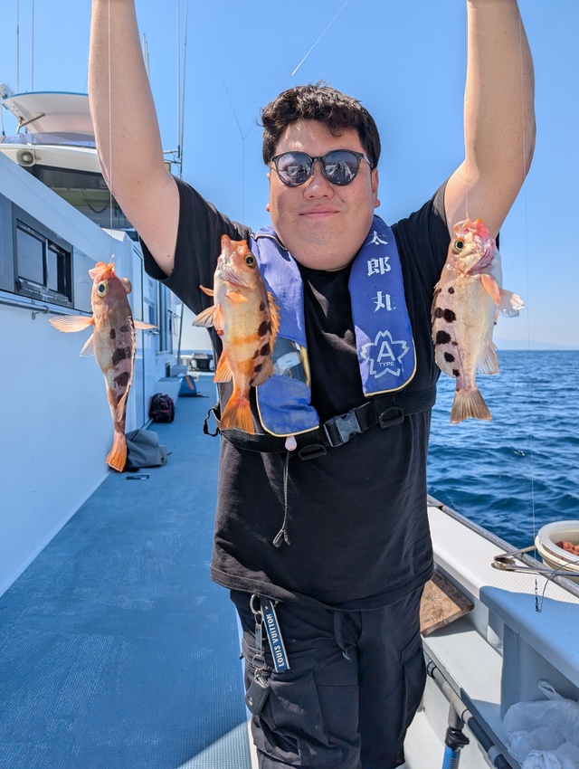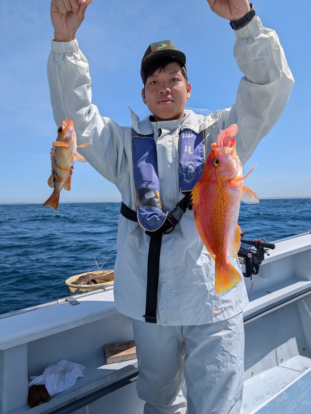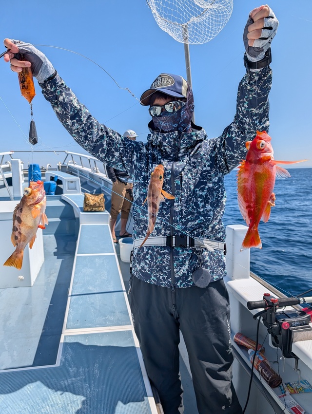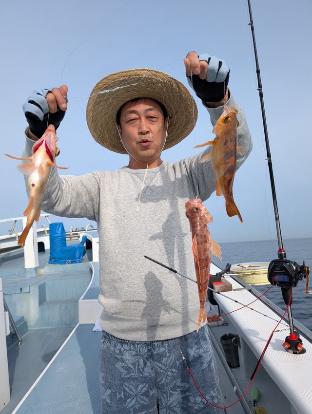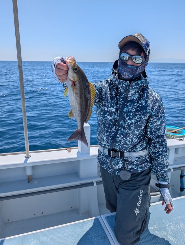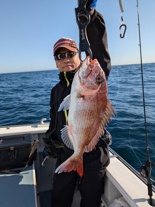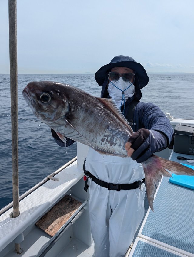 (キダイ)アマダイ 30~40cm 0~2匹 ホウボウ トラギス カサゴ 朝は風が強めでしたが 波もほぼなくベタ凪釣行でした。 ほとんどのお客様がビギナー様だったので 朝は少し浅めのポイントを。 生体反応は多くはありませんが その後は少しずつ深場を 探っていきましたがイマイチ。 フグ被害も多く避難しました。水色やや澄。 10時半頃に大本命のアマダイが!!!!!! それも女性のビギナー様がゲット! 魚も綺麗な女性が好きなのかも?笑。 11時を過ぎるとアタリも少なくなり 潮流れも無くなってきて 苦しい時間帯に それでも皆さん頑張ってくれて 13時30分に常連様が40cm近いアマダイをゲット! その前にも良いヒットがあったそうなのですが 食いが浅くバレてしまったそうです。 少しずつ潮流れも出てきたところで 終了時間を迎えてしまいました。 ブザービートで常連様がもう1尾ゲットして 滑り込みで竿頭となりました。 一昨日まで本当に生体反応がなかったので 水温も上がってきて これからに期待が持てますね。 まだまだ戦い続けましょう!!!!!! ありがとうございました。