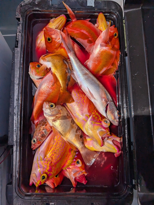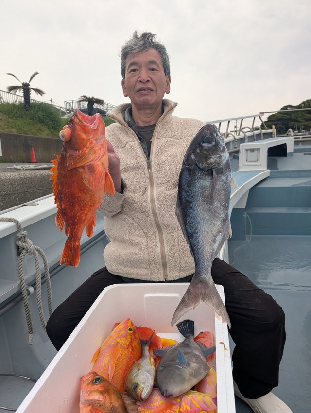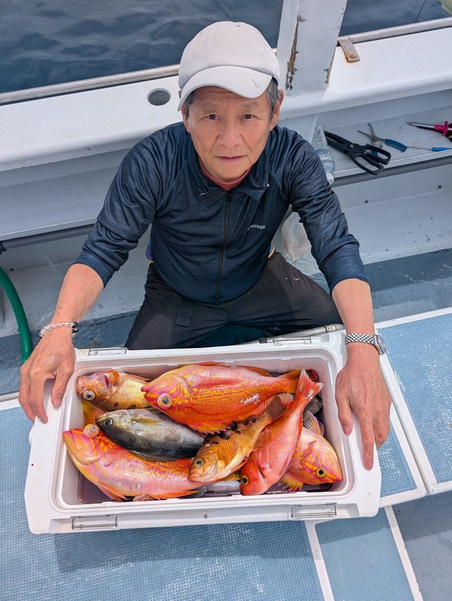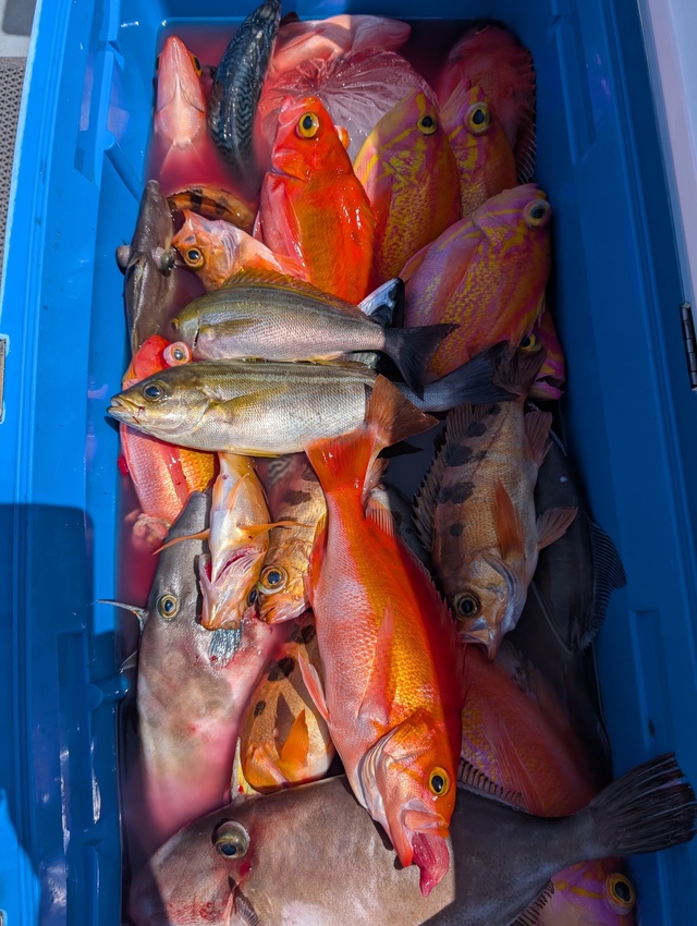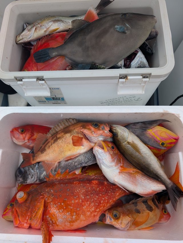 (キダイ)20~35cm 3~10匹 イサキ 21~28cm 0~3匹 サバ アカイサキ カイワリを求めての乗合い船でした! またカイワリを求めて乗合い船頑張ります。 ありがとうございました!