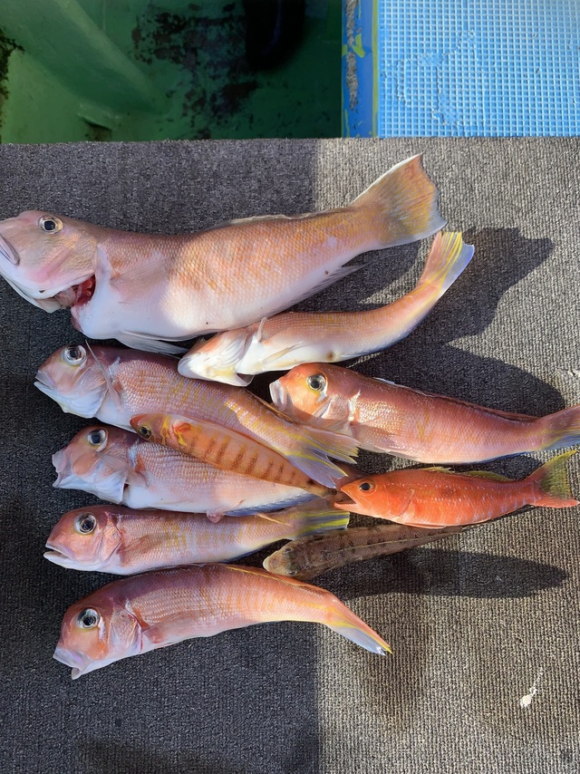 (アカアマダイ)23~43cm 0~2匹 イトヨリ 25~30cm 0~1匹 サバ 30~40cm 0~6匹 ウィリーアマダイ五目アマダイ23~42㎝0~2枚イトヨリ25~30㎝0~1枚サバ30~40㎝0~6匹小アジEtc リクエストによりアマダイをメインに操船ターゲットのアマダイは23~43㎝とサイズもまずまずで顔を見ることが出来ました他にイトヨリアジサバとお土産はキープで楽しんで貰えて良かったです!