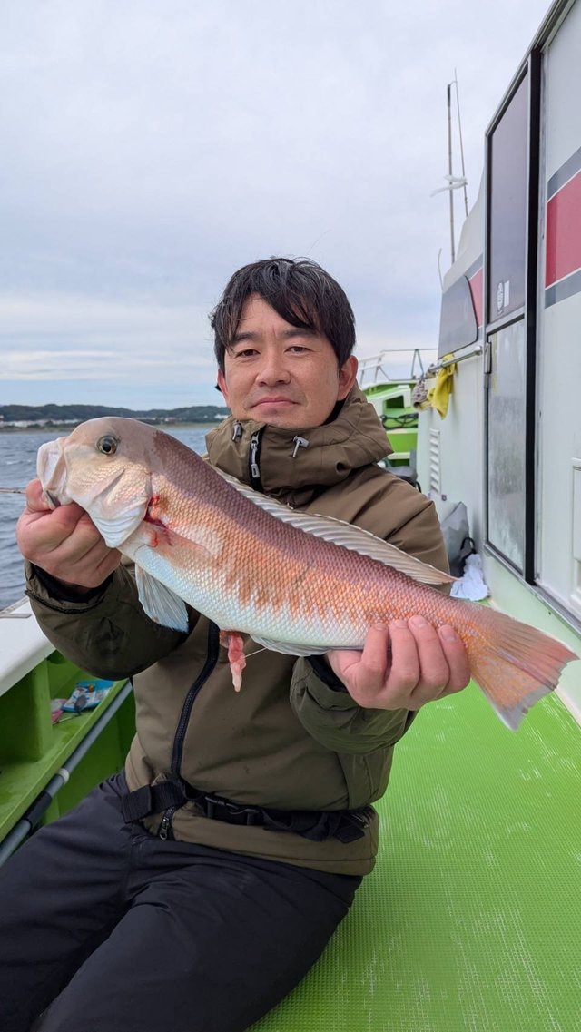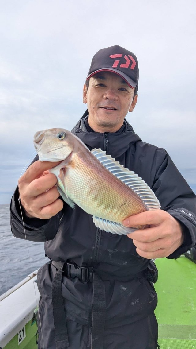 (アカアマダイ)28~41cm 0~4匹 カツオ ヒラソーダ オオモンハタ イトヨリ シロアマダイ アマダイ船 良型主体◎ 予報大ハズレで洗濯物ビッチョリ⤵︎寒い中ご乗船皆様ありがとうございましたm(__)m 前半は潮が流れずアタリ少なくでサッパリ、、、 アレレと思いつつ後半僅かな流れ始めでポツリポツリとアマダイが上がり始め、良い流しではアマダイ3人同時ヒットなんかもありました(^^) 35~40cmの良型主体でしたのでまずまず◎だったと思います。 他に美味しいゲストも多数上がりお土産はバッチリでした! 明日も寒そうですので暖かい格好でお越しくださいm(__)mご予約いただき出船確定です。頑張ります♫