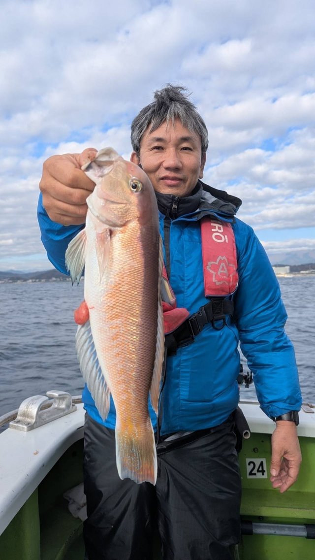 (アカアマダイ)20~37cm 0~3匹 シロアマダイ 22~36cm 0~2匹 イトヨリ 20~40cm 0~6匹 今日はアマダイに出船しました! 朝一シロアマダイ狙いですぐ釣れて餌取りが悪く移動しながら拾い釣りで最大36cm0~2匹。イトヨリもたまに上がり40cm交じり0~6匹。深場に移動しながらアマダイ狙いで良い流しもあってほとんどの方に釣れて0~3匹。オニカサゴ、ホウボウ交じり。 赤、白交じり0~4匹でした! 12月土日平日空きあります! よろしくお願いいたします!