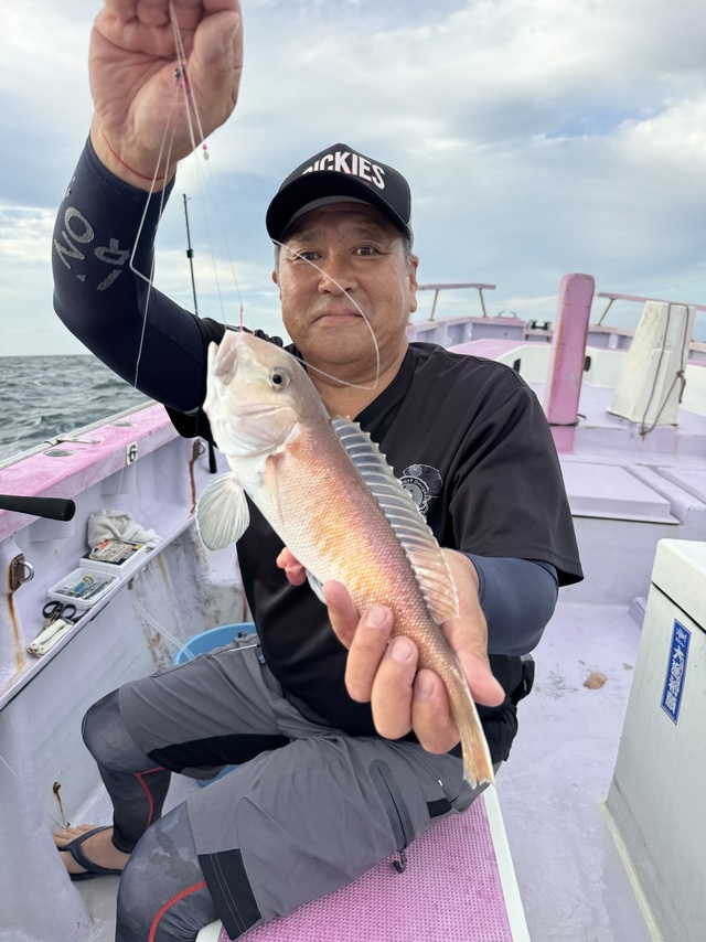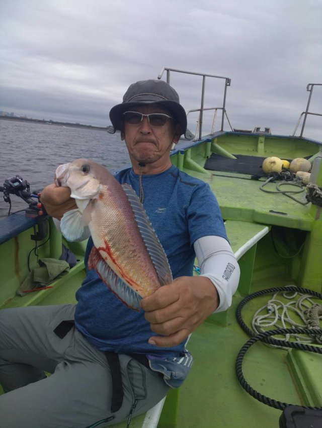 (アカアマダイ)0~2匹 今日は朝からあいにくの大風とウネリでガシャガシャで、当たりやタナが取りづらかったです。予報では後半風がおさまる予定でしたが、最後の方まで吹き続きました。思うような場所が出来ずに風影ポイントでやりましたが、なんとか顔見れる感じでした。竿頭はシロアマダイ含み2尾の木下さんでした