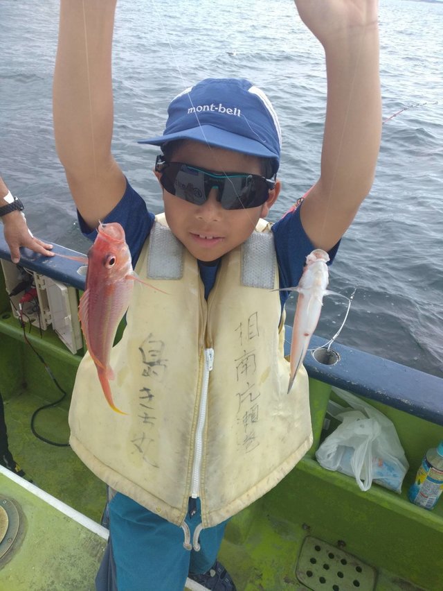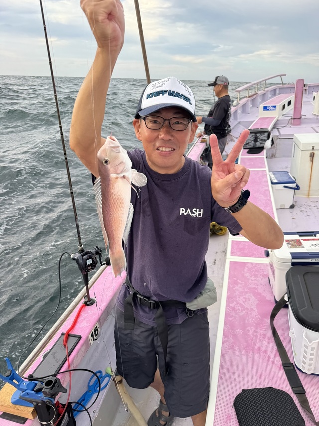 (アカアマダイ)20~45cm 1~4匹 他にイトヨリ、ホウボウ、カサゴ、サバ等。今日は風強めで海も悪く船酔いでダウンの方もいらっしゃいましたが皆さん型見れ良かったですね。