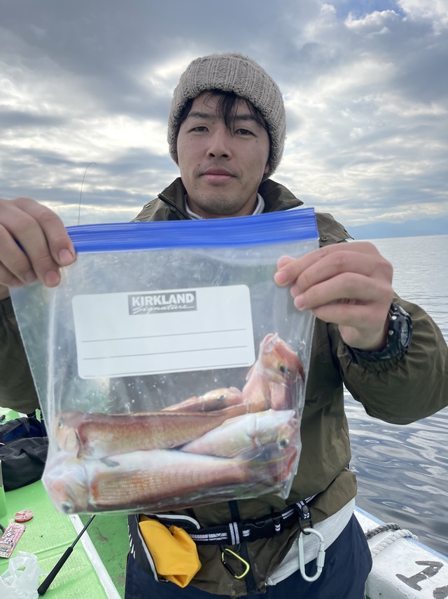 26~40cm 0~1匹 アマダイ 22~32cm 1~12匹 オニカサゴ 0.40~0.80kg 0~3匹 マハタ 28~35cm 0~1匹 カサゴ 28~34cm 0~2匹 本日もご乗船頂きありがとうございました。今日はアマダイで出船しました。朝からポツポツとアタリ有り誰かしらが釣れる感じでしたね!海も凪だし段々と暖かくなって来て釣り日和(^^)サイズは小さいけどつ抜けもしました。釣果に差がついてますが聞いていただければアドバイスしますよー。また、お越し下さい☆木曜日、金曜日空いてますのでよろしくお願いします。土曜日、日曜日もガラガラですよ!