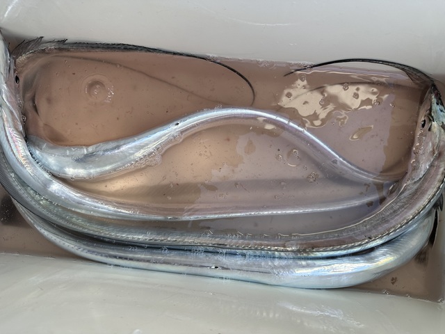 (シログチ)タチウオ 70~119cm 1~8匹 シリヤケイカ 本日日曜日も出船致しました。 皆様お越し頂き誠にありがとうございます。 走水周辺海域にて1日! 開始から型は出ましたが、相変わらずなテクニカルっぷりで、その後は各所転々と当て替えながら、 ポチーン、、ポチーン、と間が空きつつ、オカズは追加できました! 本日も掛け損じ・バラシは安定して目立っておりました。 口使ってくれるタイミングを逃さず、如何に打率アップさせるかがポイントですね! サイズは中型主体に、小太刀~ドラゴン級も混じりました。 総員オデコなく、今晩のオカズは確保できまして何よりでした!