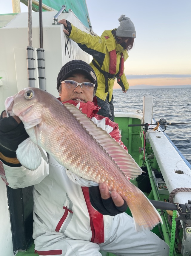 令和7年スタートはアマダイ乗合2隻で出船させて頂きました。 ポイントによって潮流れが上潮下潮が違いお客様釣り難くく辛抱して流してればアマダイ拾えそうな場所断念 釣りしやすいポイントでまったりとアマダイ、シロアマ型みてイトヨリと後半アマダイ喰渋りながらも何となく誰かしら釣れだし!途中スーッと針から外れも時々ありましたがなんとか型みれたような。