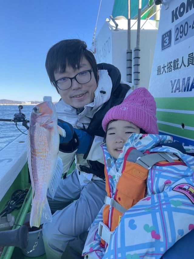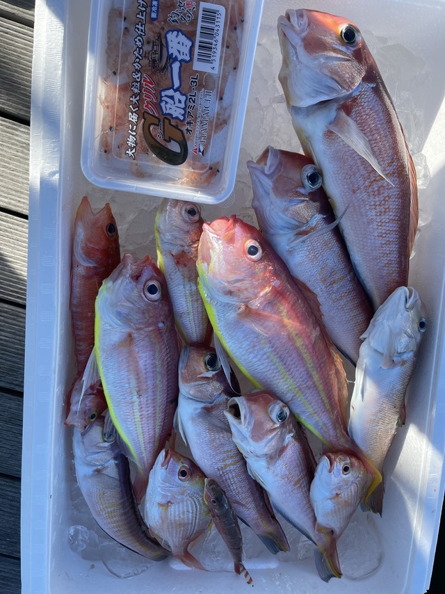 (イトヨリダイ)タイ イナダ ハタ カイワリ タイ五目。今年も残り数日の出船となりましたー。 本日は赤鮫会withST会feat長老会と出船してきました。 風が強くなる予報だったので、朝から気合い入れて。 まずは赤鮫リーダーから赤からスタート。 その後はST会親分も赤。 皆様幸先良し。 イナダ、イトヨリ、ハタ、カイワリとバリバリは釣れませんが誰かが何処かで何かを。 風が予報通り少し強くなり、波が少し出てきて釣りづらくなってきて、食いも落ちてきてしまいましたがさすが皆様。 釣る気力も落ちてきて間が空く時間へ。 まぁ少しは休憩も必要ですからね。 我慢の時間もありましたが最後やっぱり決めてくれるのはベテラン長老! きっちりと赤で〆てくださいました。 今日はサイズは小ぶりではありましたが良かったと思います。 本日も皆様お疲れ様でした。 今年一年皆様にはお世話になりました。 来年もよろしくお願いします。