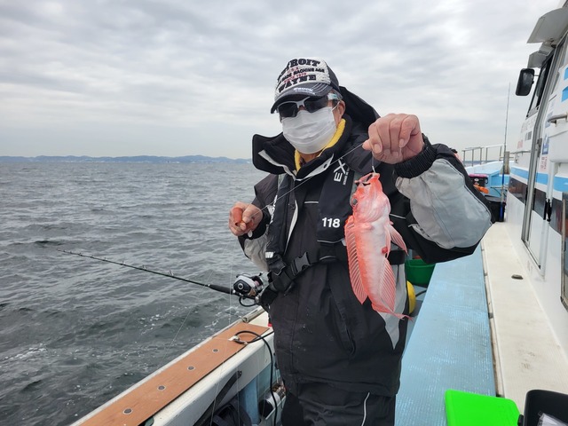 26~38cm 1~4匹 根魚五目船。 朝イチは何も当たりなくおかしい感じでスタート、移動して深場で良型黒ムツ何匹か単発でヒットしましたが、後が続かず拾い釣り。 その後浅場ポイントで顔ぐらい見るよと情報あって、何匹か釣らせてもらいましたがサイズ小さくバレがありました。 後半は金目鯛狙いで移動後、スミヤキ・白ムツまじりで金目鯛顔だしてくれましたが、渋かったですね。 金目鯛0〜3枚、白ムツ2〜10、スミヤキ、アジ、サバ、ユメカサゴなど。いつもよりとぼしい感じでした。 明日は陽気悪く休船します。 水曜日からのご予約宜しくお願いいたします。
