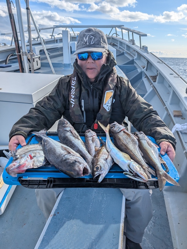 28~38cm 0~6匹 キンメダイ 28~35cm 0~4匹 本日ご乗船の皆様お疲れ様でした 北風強く釣りにくかったですが、朝イチよりクロムツ多点掛けであがりポイント移動してからもキンメダイ、シロムツなどゲットできました ★明日も※キンメ・ムツ五目船出船確定です 少人数でお座席ガラガラ状態です 当日飛び込みもOKです 皆様のご乗船お待ちしております ★明後日(土)※キンメ・ムツ五目船 ★明々後日(日)※スポット・五目・アマダイ船 皆様のご予約お待ちしております