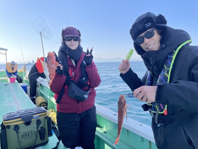 (マサバ)30~40cm 0~5匹 アマダイ 25~33cm 1~4匹 カサゴ 23~33cm 0~2匹 ウィリーアマダイ五目アマダイ25~33㎝0~2枚サバ30~40㎝0~5匹カサゴEtc 魚影は濃いのですがアタリを獲るのが難しい1日でしたそんな中皆さん頑張ってくれてアマダイゲストのサバカサゴと顔を見てくれてホットしました! アマダイ五目アマダイ25~30㎝1~4枚オニカサゴ(カサゴ混じり)23~33㎝0~2枚 潮流れが悪く何も釣れない時間帯もありましたが何とかアマダイは1~4枚と全員Get!他にオニカサゴ混じりで帰港出来ました!