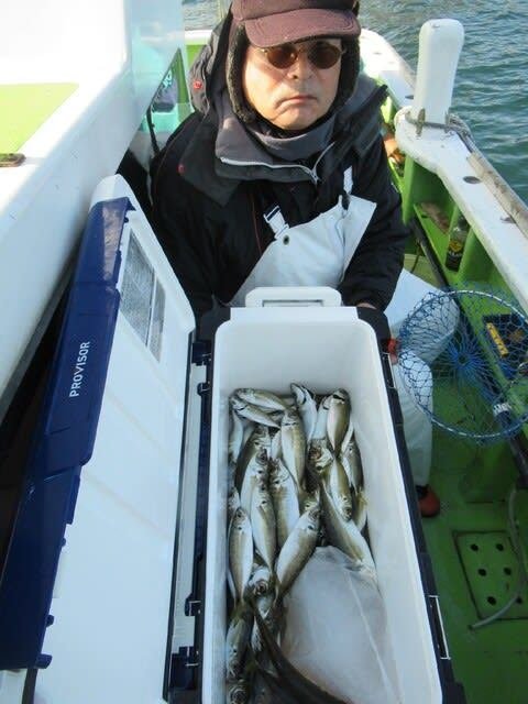 (ゴマサバ)マダイ 0.40~1.20kg 1~3匹 カンパチ ホウボウ キントキ ウマヅラ 1~3枚、0.4~1.2kg。 外道:カンパチ・ホウボウ・キントキ・ ウマヅラ・サバ。 佐島沖40~70m。 H様真鯛1.2kgゲットしました。 五目釣り、久々のヒットです。 今日は、暖かく、ホカロンも入らなくなる暖かさのようでした。 お疲れ様でした。 久しぶりに外道の種類がでて、良かったです。 乗船ありがとうございました。