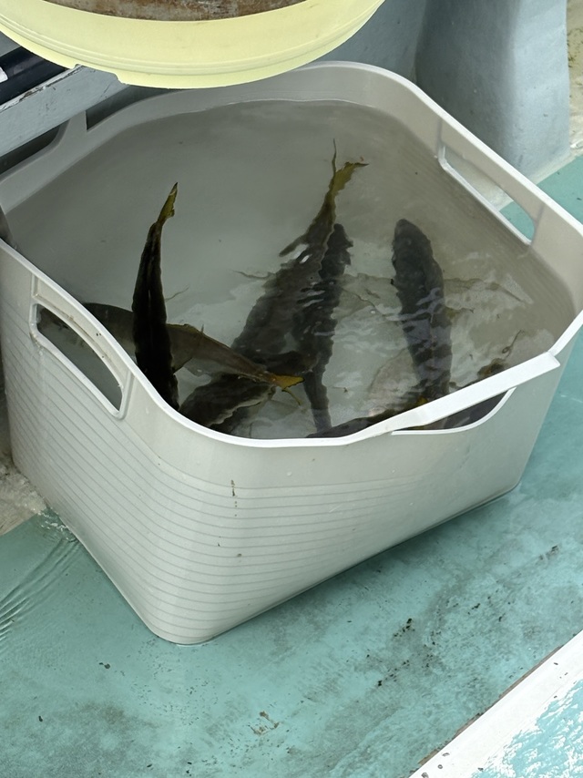 (ゴマサバ)カツオ 1.20~2.00kg 0~5匹 サワラ シイラ 痛恨のハリス切れ、、、 前半はカツオ狙い! 今日もたまーにカツオがHITする状況で、バリバリとはいかず難しい中のカツオ釣りでした。 コマセが半分くらい無くなったところで早めにマグロ狙いへ! クラゲ流し釣りで開始早々に[食いそうですよ~]とアナウンスした直後にキハダHIT出ましたが、、、 痛恨の飲まれ切れ、、、 残念でした(;;) この後はソナーに魚影映るもキハダのアタリは出ませんでしたね。