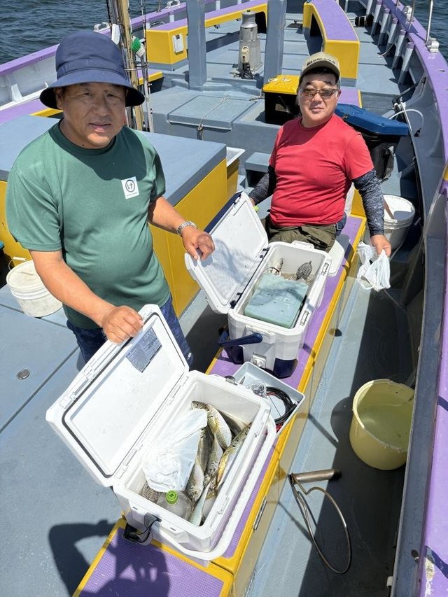 (ゴマサバ)イサキ 18~29cm 15~36匹 アジ 18~32cm 2~9匹 メジナ 0.40~0.80kg 1~5匹 マダイ 1.60~1.80kg 0~1匹 カワハギ ウマヅラ ライト五目船。 もちろん暑い1日でしたが、南西風が吹いていたので救われました。 海は悪かったです…アジから試しましたが、なかなか数が出てくれませんね。厳しかったです… イサキのポイントは相変わらず潮が速く、釣りにくい海のわりには釣れてくれましたね。珍しくカワハギも顔を出してくれました。まさに五目釣りの1日でしたね。