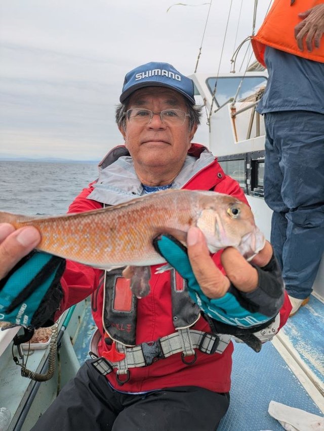(ゴマサバ)アカムツ 合計1匹 シロムツ ツボダイ ユメカサゴ LT根魚船です。 期待してたキンメ、クロムツは型見ず! 水深が合わなかったのか? アタリ少なめ苦戦しました。 潮汚れがすごいので、早く回復してもらいたいです。