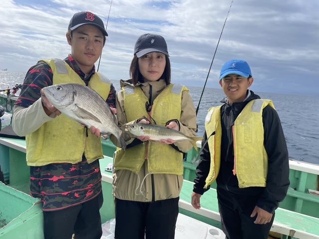 (チダイ)0.30~0.80kg 0~2匹 イトヨリ 25~40cm 0~3匹 アマダイ 30~35cm 0~1匹 ウィリーアマダイ五目ハナダイ0.3~0.8㎏0~2枚アマダイ(シロアマダイ混じり)30~35㎝0~1枚イトヨリ25~40㎝0~3枚アジ25~42㎝0~4匹サバソーダアオハタカイワリクロダイホウボウEtc ターゲットのハナダイアマダイシロアマダイクロダイイトヨリ始めゲストにはアオハタカイワリソーダサバと皆さんお土産はバッチリキープで帰港です! チャーター機 各船共にハナダイアマダイアジソーダサバとビギナーの皆さんも含めて楽しい時間を過ごして貰えて良かったです!