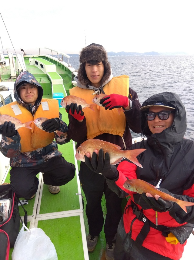 (チダイ)マダイ イトヨリ マダイ五目船。 イトヨリが交じりました。 マダイ、ハナダイ、0.4-1kg、0-2匹。 水深:40M~100M。 風向きと強さ:北東弱い。 波高:0-0.5M。