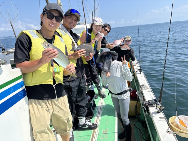 (チダイ)0.50~0.80kg 0~2匹 イトヨリ 28~35cm 0~1匹 サバ 23~40cm 4~10匹 ウィリーアマダイ五目ハナダイ0.5~0.8㎏0~2枚イトヨリ28~35㎝0~1枚サバ23~40㎝4~10匹アジ25~40㎝0~3枚メジナホウボウソーダEtc ターゲットのハナダイイトヨリホウボウ他にBigアジサバソーダと今日もお土産はバッチリ楽しい時間を過ごすて貰えました! PS明日は定休日で休船しますm(__)m