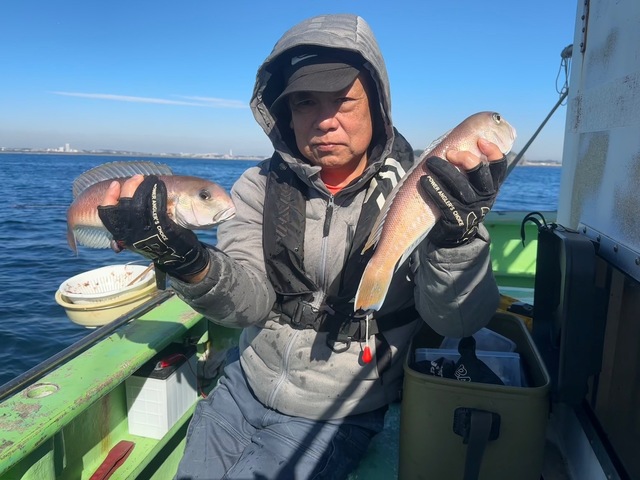 (チダイ)マダイ 3.30kg クロダイ ヒラメ シロアマダイ イトヨリ ホウボウ 今日は青物五目乗合船とカワハギ仕立船が出船しました! 本船はカワハギへ。 皆様20cm前後のカワハギ見れて Topは10枚でした! お土産サイズで良かったです! 楽しく、皆様カワハギ釣れて良かったです! また、来年もよろしくお願いいたします! 乗合船は、 五目釣りでした! 明日は仕立船。 明後日は青物五目乗合船で出船確定! 皆様からのご予約をお待ちしております。