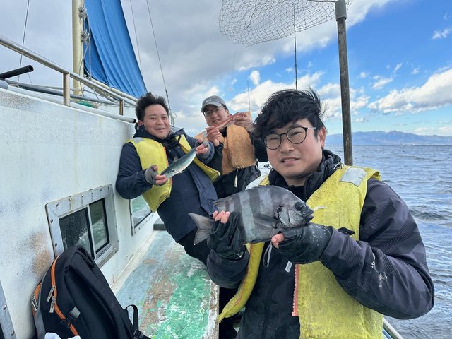 (チダイ)イサキ 17~35cm 13~41匹 アマダイ 28~35cm 0~1匹 イトヨリ カワハギ 朝はやや強い北東のち曇りのベタ凪で寒かった〜 8名のお客様に来て頂きライト五目船。 イサキは良型混じりの塩焼きサイズ主体で前半は渋かったですが後半少し盛り上がりがあって全員ツヌケ。 短時間アマダイ狙いは潮流れが無く顔見るのがやっとでした。