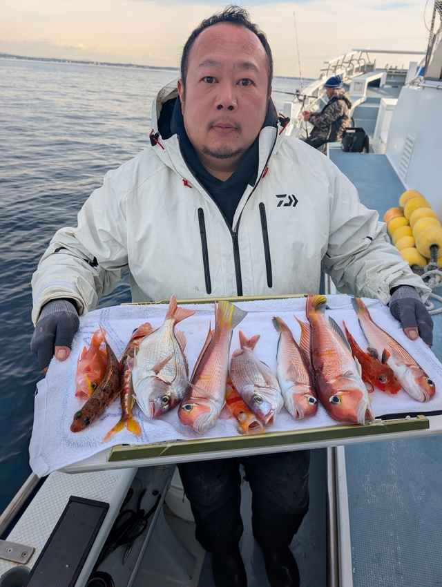 (チダイ)0.30~0.70kg 0~2匹 アマダイ 20~38cm 2~10匹 本日ご乗船の皆様お疲れ様でした 今日は少人数で※スポット・五目・アマダイ船にて出船でした 潮流れまずまずでハナダイ・アマダイ・カイワリ・イトヨリ・オキメバル・オニカサゴなど凪よくお土産できました ※次回・スポット・五目・アマダイ船は・・・15日(日)となります まだまだお座席十分余裕あります 皆様のご予約お待ちしております ★明日は※キンメ・ムツ五目船にて出船確定しております お座席十分余裕あります 当日飛び込みもOKです!! 皆様のご乗船お待ちしております