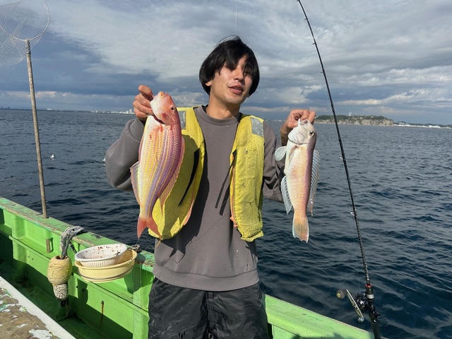 (チダイ)0.30~0.60kg 0~2匹 マダイ 0.40~0.70kg 1~4匹 クロダイ 1.00~1.20kg 合計2匹 ホウボウ 26~38cm 0~2匹 カイワリ 22~30cm 2~10匹 アジ 25~35cm 0~3匹 トラフグ 1.00kg 合計1匹 ショゴ 46cm 合計1匹 本日もご乗船頂きありがとうございました^o^今日はLT五目で出船しました。朝からタイ狙い…朝イチから0.7キロのマダイget→続いて良いアタリ!デカそうなタイの引き込み…後10mくらいでバレちゃったみたいと…上がって来ると針折れてましたね(;;)残念!その後は少しサイズが小さいけどちょいちょい釣れてクロダイも混じりましたねー(^^)今日はカイワリがよく掛かりました。皆さんタイはgetしましたが釣れる方と釣れ無い方に少し差が出ましたね。タナ取りと弱いアタリ見逃さない様に…次回の五目もタイ釣れると思うので、チャレンジャーお待ちしてます♪明日はショートルアーです。