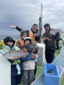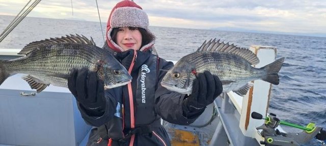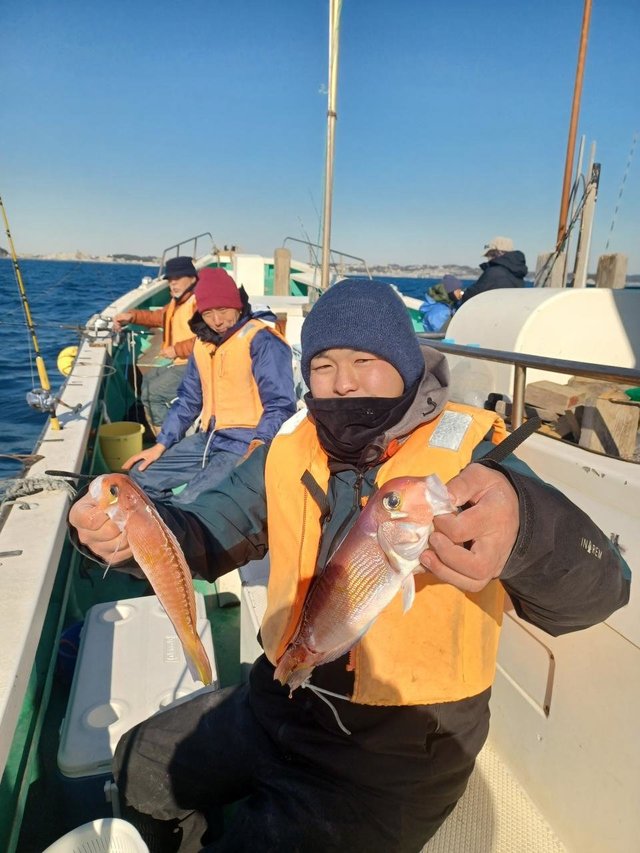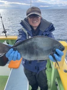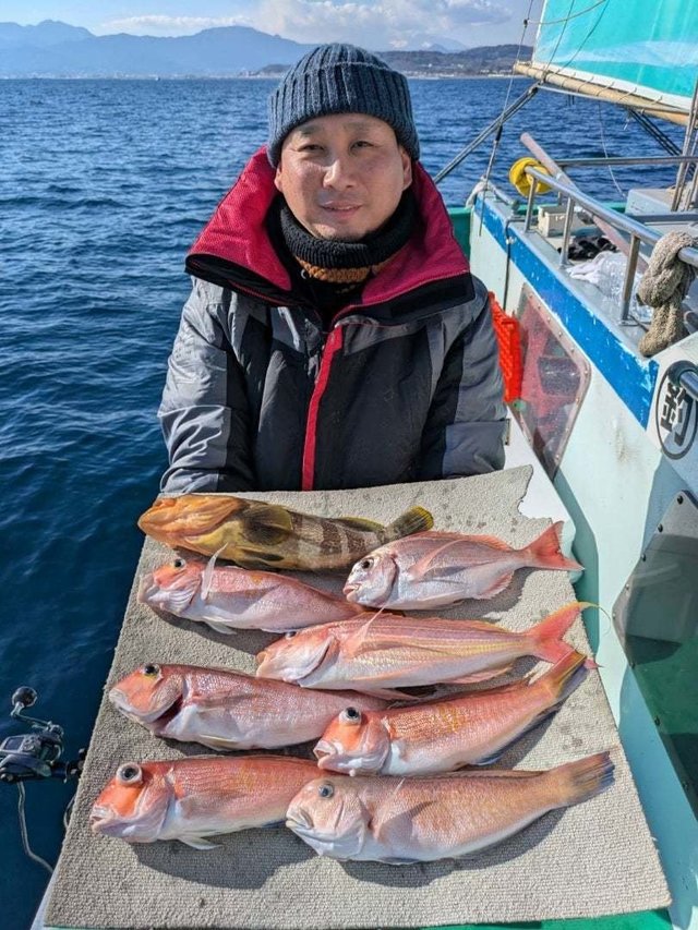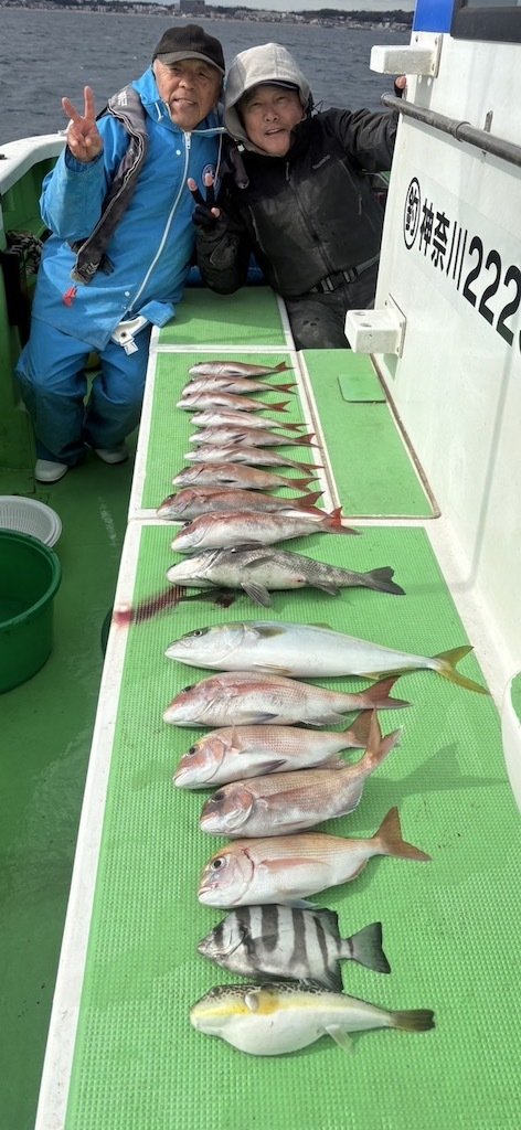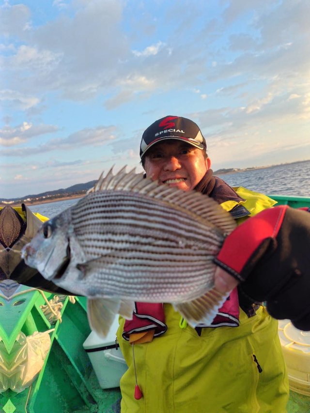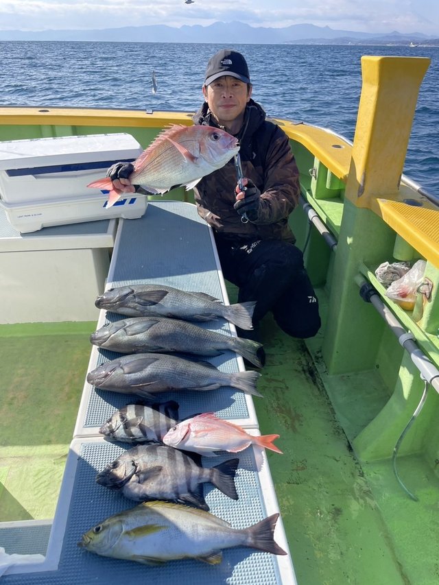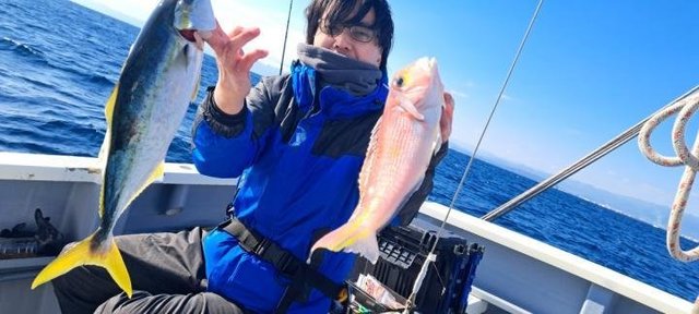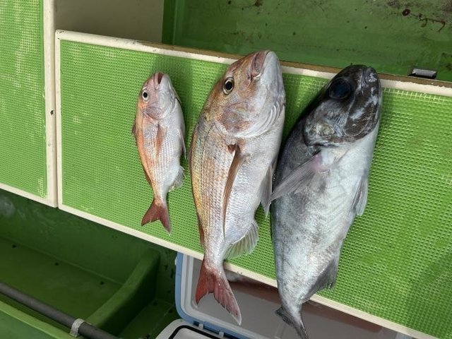 (チダイ)0.30~0.60kg 0~2匹 マダイ 0.40~0.70kg 1~4匹 クロダイ 1.00~1.20kg 合計2匹 ホウボウ 26~38cm 0~2匹 カイワリ 22~30cm 2~10匹 アジ 25~35cm 0~3匹 トラフグ 1.00kg 合計1匹 ショゴ 46cm 合計1匹 本日もご乗船頂きありがとうございました^o^今日はLT五目で出船しました。朝からタイ狙い…朝イチから0.7キロのマダイget→続いて良いアタリ!デカそうなタイの引き込み…後10mくらいでバレちゃったみたいと…上がって来ると針折れてましたね(;;)残念!その後は少しサイズが小さいけどちょいちょい釣れてクロダイも混じりましたねー(^^)今日はカイワリがよく掛かりました。皆さんタイはgetしましたが釣れる方と釣れ無い方に少し差が出ましたね。タナ取りと弱いアタリ見逃さない様に…次回の五目もタイ釣れると思うので、チャレンジャーお待ちしてます♪明日はショートルアーです。