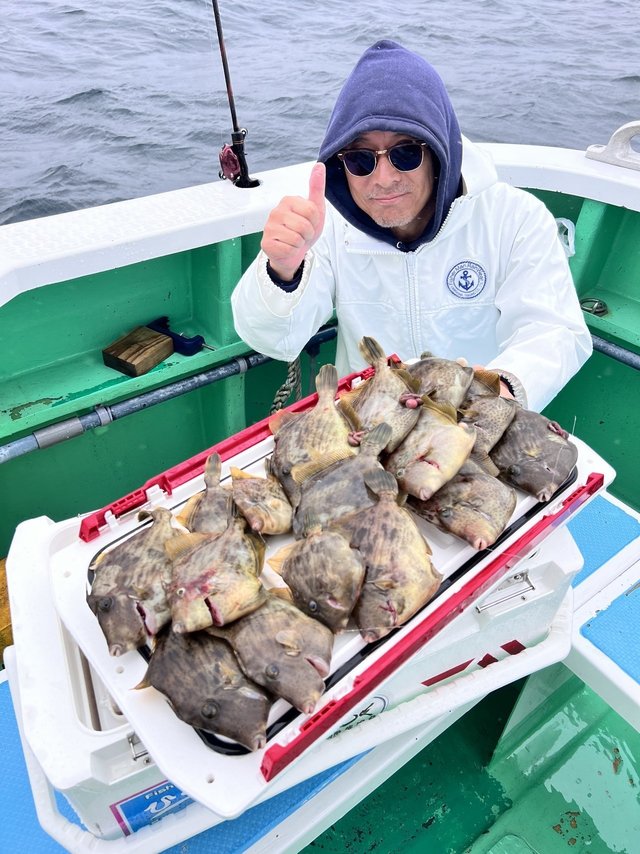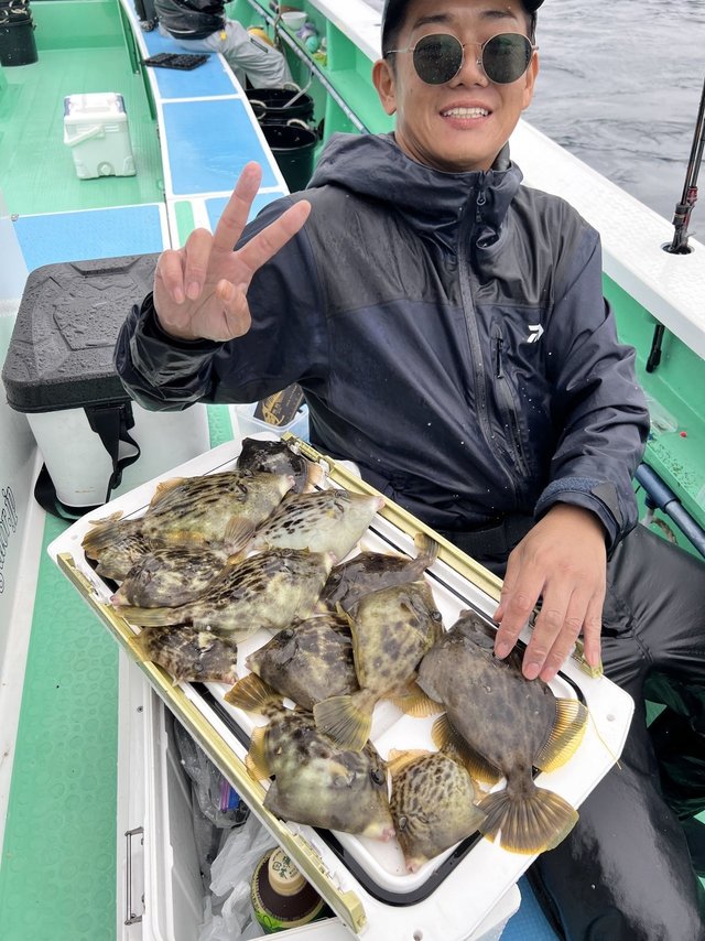 (キハダ)14.00~42.00kg 0~2匹 ※本日は船の綱修理作業のため、簡易的なご報告となります。 ご了承ください。 ■カワハギ釣り 本日は風や潮の流れなど、やや厳しい条件下での釣りとなりましたが、 潮色が澄みはじめ、全体的に良い雰囲気の一日でした! トップ:16枚次点:10枚、9枚、8枚と好調! レンタルの方も2枚キャッチされました! 厳しい状況の中でも、しっかりとアタリを出して枚数を伸ばす方が多く見られました。 これからの潮回りに期待が持てそうです。 ■マグロ釣り こちらも本日当たり良好! 惜しいバラシも多く見られましたが、それでも7本前後をキャッチ。 アタリの数、引きの強さともに楽しめる一日となりました。 11打数7安打とまずまずでしたね! 最大42kgでした~ ■ご案内 明日は配船の都合によりマグロ船は出船いたしませんが、 明後日はガラ空きのご予約状況となっております! ご予約・お問い合わせをお待ちしております。