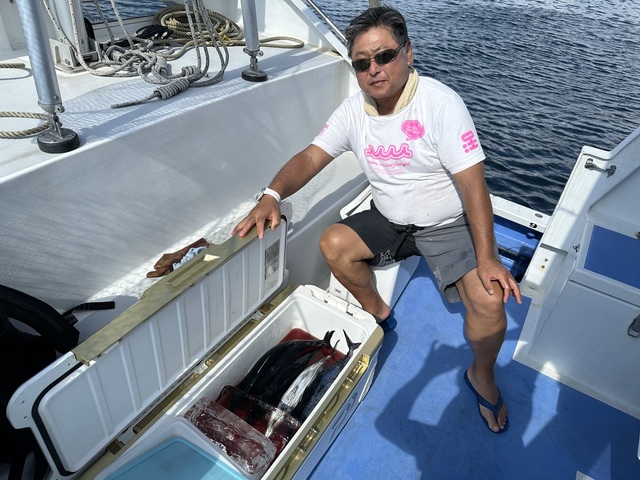 23.90~46.00kg 0~1匹 1号船キハダです。バラシ多数あり。今日もマグロは釣れました。 以前好調ですよ〜。 カツオ狙いの方が居なくて 朝からマグロ狙いのみ。 バラシも多数有りましたが 4本獲れました。 明日は定休日で 心も体もリフレッシュして来ます。 カツオもまあまあ釣れましたよ。 マグロ狙っていても 反応が入って来て ポツポツ釣れました。 けど釣果は出しませんけど 釣った方は5〜6本は釣れたよ。