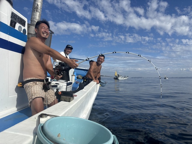 (キハダ)33.00~45.00kg 0~1匹 カツオ 1.50~3.00kg 2~15匹 今日6日も、カツオのナブラが見つかり、皆さんお土産キープ!その後マグロの反応見つかり、流しっぱなしで、マグロ5打数2安打!33kg~45kg捕獲出来ました!流しっぱなしで、カツオもポツポツ当たり、カツオトップ15本1.5kg~3.0kg!クーラー満タンでした(笑)今相模湾激アツですので、是非このチャンスを逃さないでください!
