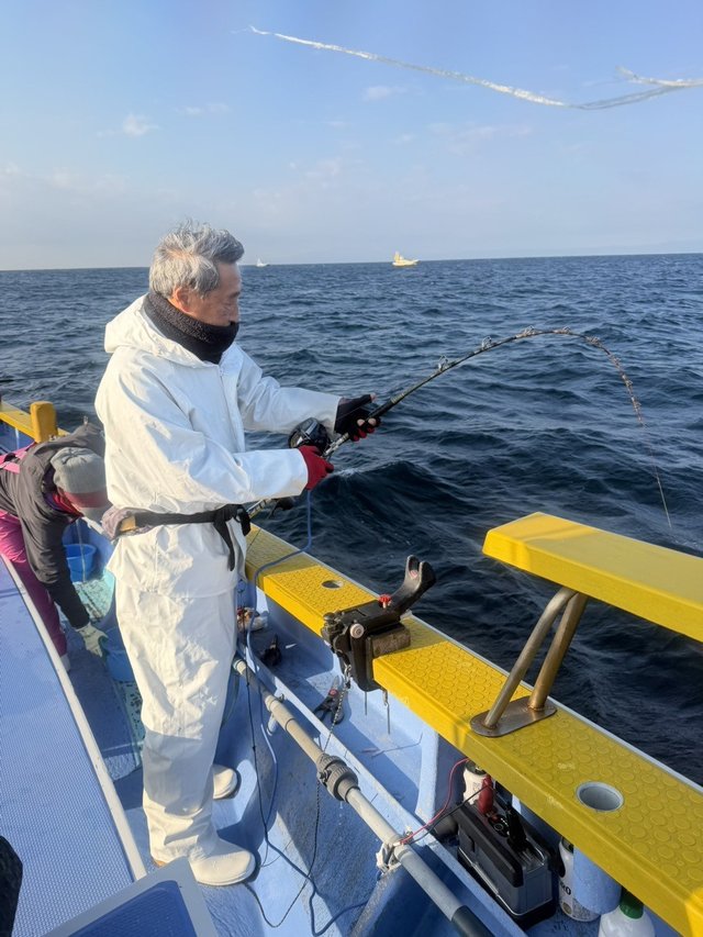 どおも、優神丸です。 今日は第2優神丸がコマセキハダでした。 凪だったから良かったけど 聞いてた情報と違い遠かったです。 回遊魚だから仕方ないですよね~ 凪でなければ行きません。 朝のうちは全然ダメだったけど、辛抱しました。 すると少ないながらも反応の出入りが有り。 ヒットでキャッチで27㌔でした。 再投入するも反応残らず移動。 午後にまた当たり有り、28㌔ゲットしました。 また来週かな。 皆さんお疲れ様でした。
