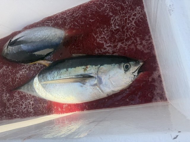27.00~40.00kg 0~1匹 キメジ(キハダ) 11.00kg 合計1匹 カツオ 2.00~2.80kg 0~1匹 本日もご乗船ありがとうございました。 マグロ2尾ゲット! 27キロと40キロ! キメジ1尾、11キロ。 カツオ2尾 今期は、本日にて、終了いたします。 ありがとうございました。