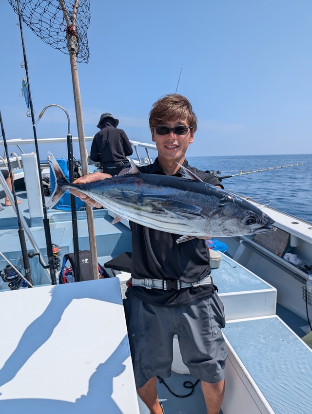 (キハダ)13.00kg 合計1匹 ホンガツオ 2.00~2.90kg 0~1匹 本日ご乗船の皆様お疲れ様でした。 朝イチからナブラ見られ、コマセ・ルアー共にアタリ有りバラシ続出でしたが、ルアーでキメジ13kg コマセでは、レンタルの方も本ガツオゲット出来ました ガツオ・マグロ仕掛け両方ご用意ください。 ★明日も出船確定しております。 ルアーの方0名様です。 凪予報でチャンスです。 ご予約お待ちしております。