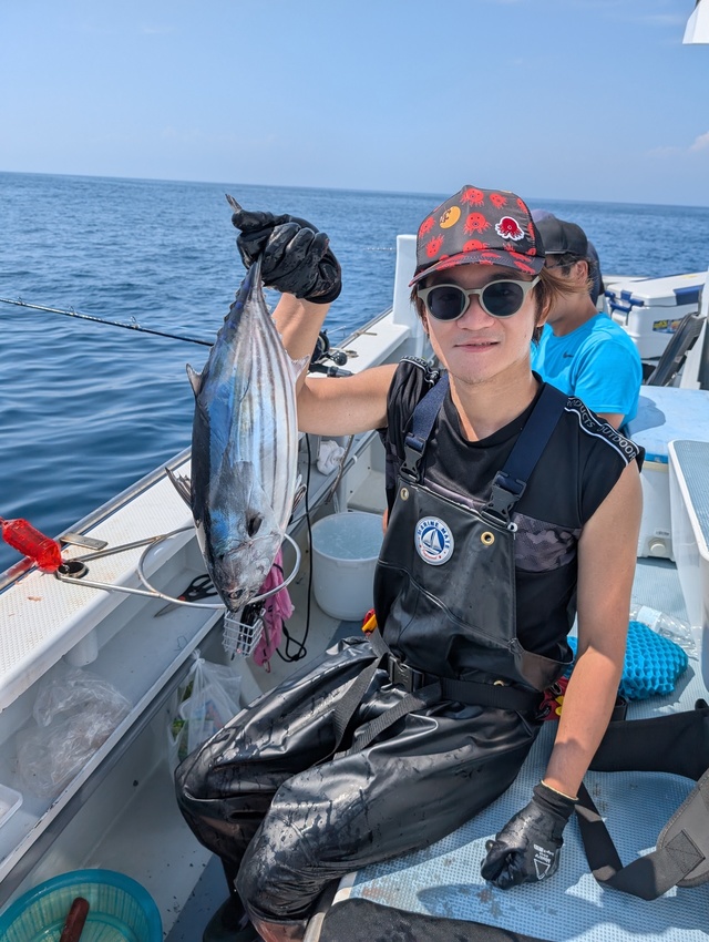 今日1日は、朝から良いナブラやらせてもらい、カツオがバラバラット当たりました!バラシ続出で、お一人顔見れず残念(泣)後半は、マグロにカツオの混泳ナブラやらせてもらい、レンタルの女性のお客様、デカカツオゲット!また電動エビングで、少ないチャンスをものにして、見事マグロを釣り上げて頂きました!24kg!おめでとうございます!カツオ0~3本バラシが無ければ(泣)マグロは、まだまだエビング有利な感じですね!コマセは、カツオが当たる感じです!