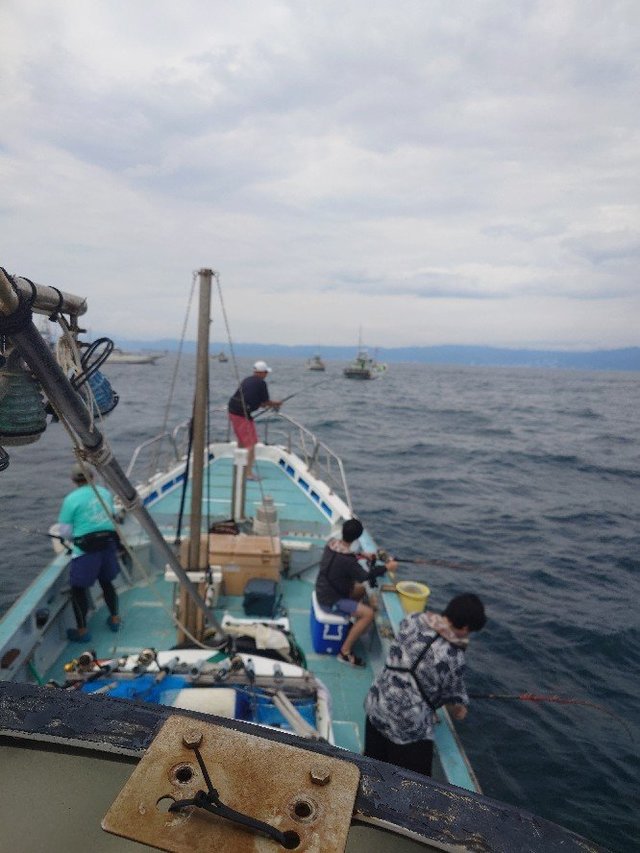 今日のキハダ、カツオ船。 跳ねちゃったら〜、投げる〜。 チェイス多し!ミスバイト多し!2本ゲット〜。 下通過するなら、エビングとコマセで〜。 エビング強し!マイラーミノー強し! 4本ゲット〜。 コマセでヒットさせてる船も有り! 皆さんとワイワイ出来ました。 今日もありがとうございました。 また宜しくお願いします。 注、今現在、移動性マグロの棚は深いです! (深くなる事が多いです) 今日もスタート100m、ヒット70mとかです! 因ってジクは300g以上推奨します。 (スローピッチ系のフワフワするのも) 150gとかお祭りするだけですよ、、。 船の前に座席表が有るので、座る場所のキャップを外して、乗船名簿にその番号を記入してください。 コマセ、エビングのカツオ、キハダ船、3人から出船可、20日、22日、24日、25日、26日、27日、29日、予約受付中です。 氷付き1人13000円です。 スルメイカ船、23日、予約受付中です。氷付き1人10000円です。 スルメタックル持って来てください。プラ角14㎝、オモリ120号〜150号。 キハダキャスティング船、20日、22日、23日、24日、25日、26日、27日、29日、30日、31日、3号船5人限定予約受付中です。 最後の予約が2人の場合6人になります。 キハダキャスティング船、キハダは船の保冷庫に入れますので大きいクーラーBOXは車に置いておいてください。 カツオ、シイラ等は、お客様のクーラーBOXに入れてください。
