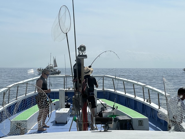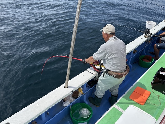 今日のコマセマグカツ船。 流し釣りで。 エビングは持久戦だったけど、ポツポツヒット! サメに食われるのも多し。 モンスター確定ヒットも、 しばらくしてからのハイスピードダッシュで 道糸空中粉砕〜。 マジ、デカかったね〜。 皆さんお疲れ様でした。 また宜しくお願いします。 コマセのカツオ、キハダ船は、棚取りは道糸のマーカーで取りますので電動リールのカウンターでは合わせないでください。 船の前に座席表が有るので、座る場所のキャップを外して、乗船名簿にその番号を記入してください。 5人から各種仕立船も予約受付中です。 コマセ、エビングのカツオ、キハダ船、1号船にて3人から出船可、29日㇑9;、30日🈳、1日🈳、2日🈳、予約受付中です。 氷付き1人13000円です。 キハダキャスティング船、30日🈳、3号船5人限定予約受付中です。 跳ねない時用にエビングもお持ちください。 マダイ船、予約受付中です。 氷付き1人11000円です。 ティップランエギング船、予約受付中です。 6人限定、氷付き1人10000円です。 SLJ五目船、予約受付中です。 10人限定、氷付き1人10000円です。