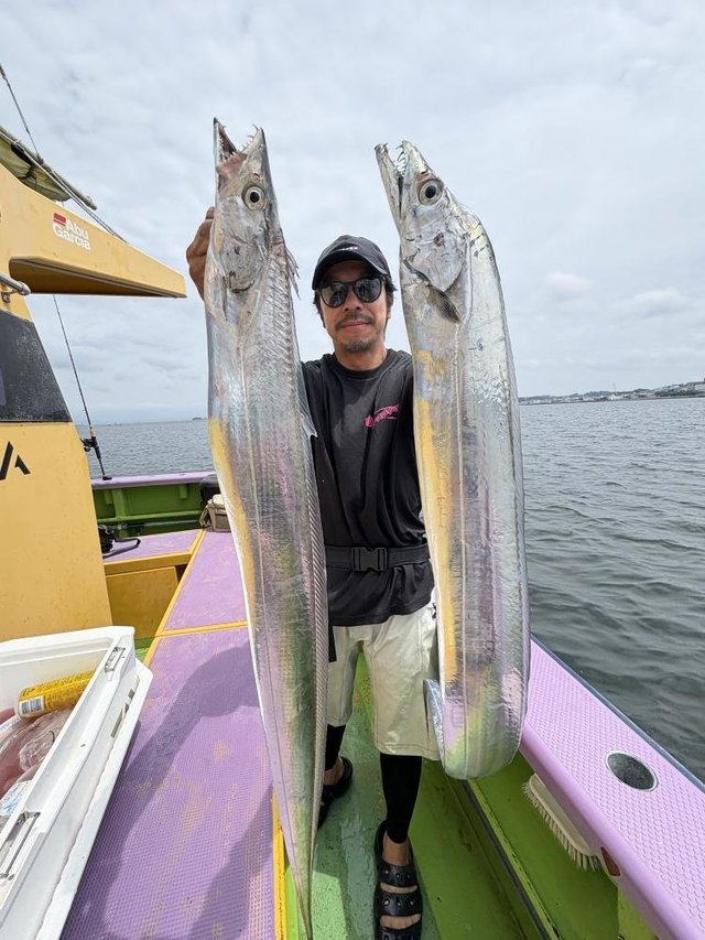 60~100cm 1~13匹 アジ 23~35cm 6~49匹 ■タチウオ&アジリレー船■ 〈タチウオ〉天秤/4-13本。テンヤ/1-2本。観音崎沖50m。観音崎沖で反応見れました。天秤釣りはアタリ多く出ていました。 〈アジ〉観音崎沖30m。中~大アジ混じりでポツポツと釣れ、おかず確保出来ました。