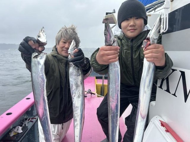70~131cm 3~16匹 ショートタチウオ船です。今日も観音から! 朝イチすぐ顔は見れましたが、 その後はしばらくクルージング…。 ランガンで攻めましたが顔見れず…。 反応見つけてからは潮速いながらもアタリ良く! スーパードラゴンやドラゴンも混じってポツポツと! 後半は潮も落ち着いてこれからって時に反応が高速移動でぶっ込みのみで…。 それでも昨日よりはアタリあったような? 寒い中お疲れ様でした!