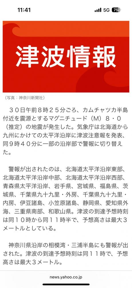 65~120cm 0~25匹 今日も朝から順調でしたが、 津波警報発令のため 10時半に撤収となりました。 全員キャッチまであと一歩でしたが、 生憎な状況となりまたチャレンジして いただきたいです。 ご来店下さった皆さま、 お疲れ様でした。 生憎な撤収ですみませんでした。 また陽気の良い日に遊びに来て下さい。 ご来店ありがとうございました。 大変暑いジギングなっております。 水分多めにご持参下さい。 アルコールは水分ではないので くれぐれもお間違いないように! 熱中症対策万全でお楽しみ下さい。 詳しい内容、タックル、ジグの種類等は 下記のURLより閲覧して下さい。 〔FC2ブログ佐野くん日記〕 http://ootayasano.blog.fc2.com/?
