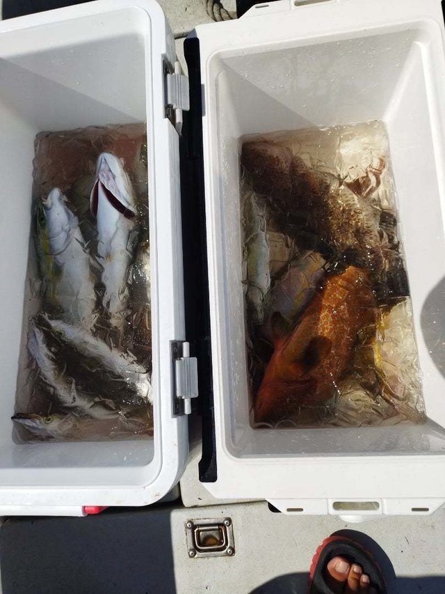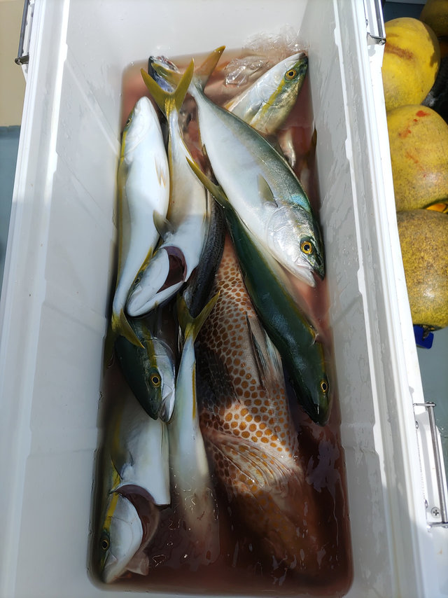 (アカカマス)10~20cm 0~30匹 アジ 18~28cm 2~35匹 マメアジ 8~15cm 0~30匹 ライト五目船。今日のライト五目船/今日は朝の内はサビキ釣りでカマス・豆アジ・小ムツ・ウルメイワシ・などを狙い、カマス10〜20cmが0〜30匹(0匹は天秤仕掛のみ.)でしたがエボシの周りなので身エサでカサゴやアカハタ狙いでも良さそうですよ。サビキ釣りはオモリ20〜30号でコマセは使いません。サビキは幹糸4号のハリス2号のサバ皮の仕掛です。(カサゴ狙いのサバエサはお店で1p¥400円で販売あり。) 中盤〜後半の天秤仕掛でのアジ狙いで、アジ仕掛やウイリー仕掛に青イソメのチョン掛でダブルでも釣れていました。