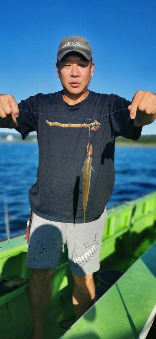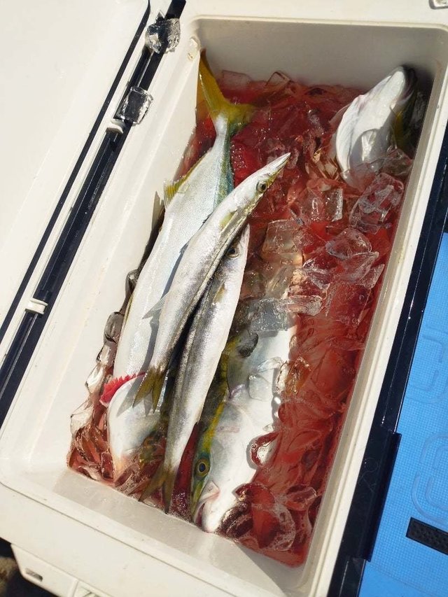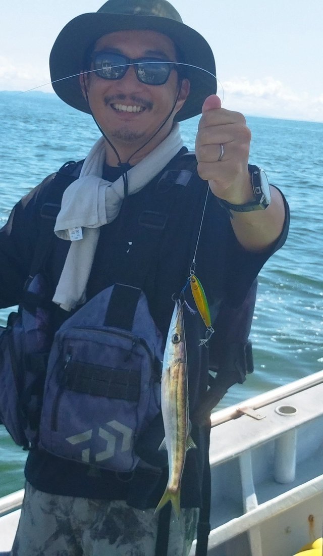 (アカカマス)シーバス 今日はカマス船で出船しました。 ルア〜カマス。 大カマス全員GET。スタートから帰りまで当たりあり。 ゲストにシーバスGET。 水面バラシ多発。半分近くバラシあり。 カマス〜3〜16本GET。 脂ノリノリ旬のカマス釣り型も良く引も楽しめオススメです。 本日も暑い中ありがとうございました。