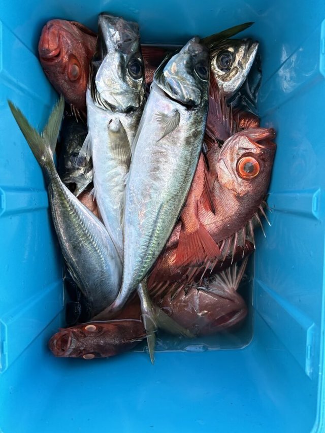 2.40~2.80kg 0~2匹 3日間の強風、10〜15mぐらい吹いてました!今日は久しぶりのコマセ五目で出船!本命のマダイは型見れず(><)メダイ2.4〜2.8kgを0〜2匹、アジ28〜37cmを3〜7匹、チカメキントキ25cm前後を5〜10匹、イトヨリダイ、沖メバル、シキシマハナダイ。