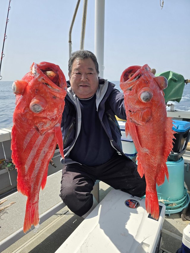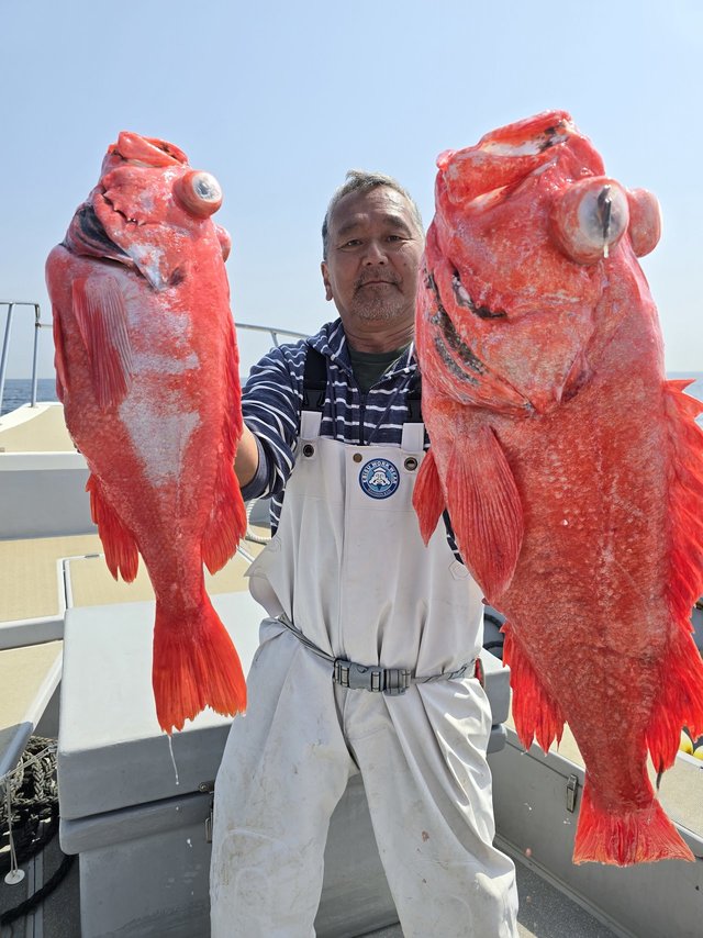 (オオサガ)3.50~5.00kg 合計3匹 水深1000mベニアコウ釣りで出船しました! 連日好調!クロダラに騙されたりもしましたが潮速い中でしたがベニアコウは3匹ゲット。