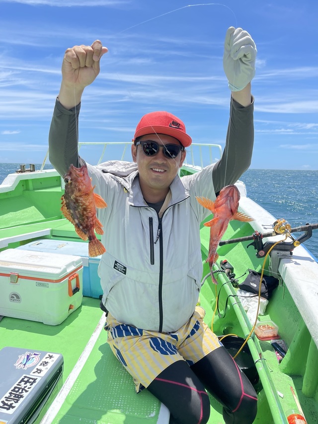 アカハタ ロックフィッシュ狙いで出船でした。 真っ青な潮に苦戦で深場みたりあちこちと移動しましたが厳しかったですm(__)m アカハタもカサゴも見た程度で撃沈でした。ごめんなさい。 親父船は中深場五目出船で皆さん良型の黒ムツ釣り上げお土産になったみたいです^^ 本日もご乗船頂きありがとうございました。