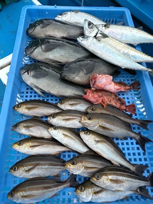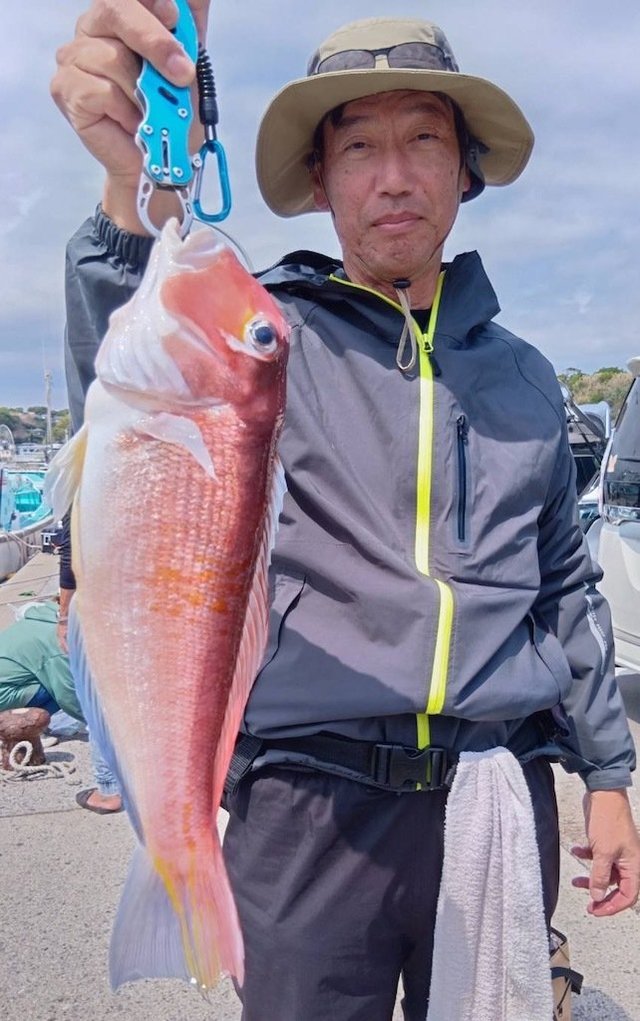 マダイ ハナダイ 0.30~0.60kg 0~4匹 アマダイ 20~38cm 0~4匹 イナダ クロダイ イトヨリ ソーダガツオ ヒメコダイ ムシガレイ ホウボウ 今日はタイ・アマダイ五目乗合船で出船しました! 朝、海悪く難しい中、マダイ、ハナダイ、クロダイぽつぽつ釣れて 7名中6名はタイ顔見れました! その後もイナダ、ソーダガツオ、ホウボウ釣れたりしてる中マダイ、ハナダイ釣れたりして、フグが多くなってきたタイミングで 沖へアマダイ狙いに。 アマダイ、着いてすぐに何名か釣れて、その後もぽつぽつ良い感じでした!サイズもカタ揃いで良かったですね!アマダイも酔ってしまった方お一人様顔は見れませんでしたが、次回リベンジですね! 本日ご乗船の皆様、ありがとうございました! またのご乗船をお待ちしております。