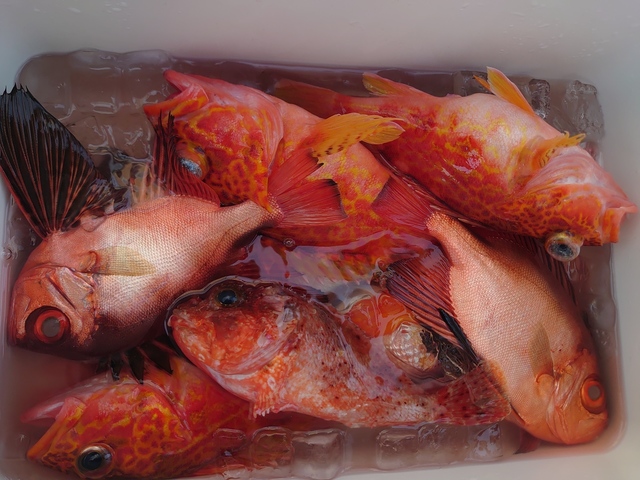 (アヤメカサゴ)アカヤガラ シロアマダイ イトヨリ アマダイ フグ オニカサゴ カンコ アラ 昨日は私用でお休み。 今日は1日大した風なく凪で出来ました!! 狙うはアマ鬼リレーです!! アマダイはいつも通りに浅場からの白アマ狙い。そしていきなり出ちゃいました。 依然としてフグが多く難しいです、、、。 なので今度は赤アマ狙いへ〜。深めを転々と流すも当たり自体が少なかったです、、、。 なのでまた浅場へするとまたしても同じ方が白アマGET!! その後はやはりフグが多く鬼カサゴへ変更です。 鬼カサゴも当たり少な目でしたがポツリ、、、ポツリ、、、とは顔見れて、カンコ、アヤメ、アラ混じりでした!! うまくいった方はどちらも顔見れましたが、 うまくいかなかった方は、、、差が出てしまいましたね。