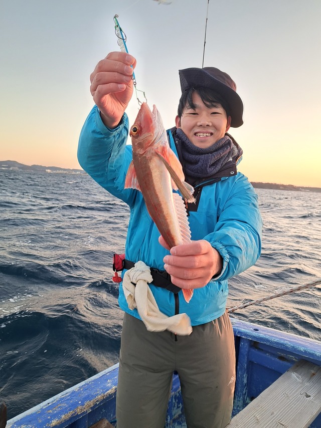 イナダ 45~58cm 3~10匹 アマダイ 18~42cm 1~4匹 クロダイ イシダイ レンコダイ カナガシラ カサゴ キントキ オキメバル 今日も、ご乗船有り難う御座いました。 北風やや強い1日でした。 朝小アジ数匹ちょこちょこしか、、サビキ仕掛けは、、 天秤ウィリー仕掛けの方イシダイクロダイカワハギ イナダ喰い活発型良くの引き強く一荷で掛かると5号ハリス枝針ぶっ飛んじゃいます。 数匹釣るとお客様方疲れてしまうようで!笑 後アマダイ釣り今日はアマダイ時間多めに作って沢山釣っちゃいましょうと思っていたら今日潮流れなく苦戦。。最後に何とか42cm確保 5名様全員可愛いアマダイでしたが顔だけ見れたので!松笠揚げが美味い! 釣果イナダ45〜58cm3〜10本・アマダイ18〜42cm1〜4枚・クロダイイシダイ0.5〜0.9k0〜3枚他レンコダイ・ホウボウ・カナガシラ・カサゴ・キントキ・オキメバル・ガンゾウ 今年も後一週間! 皆様からの沢山の予約お待ちしております。 今年の年末とっても空いてます。