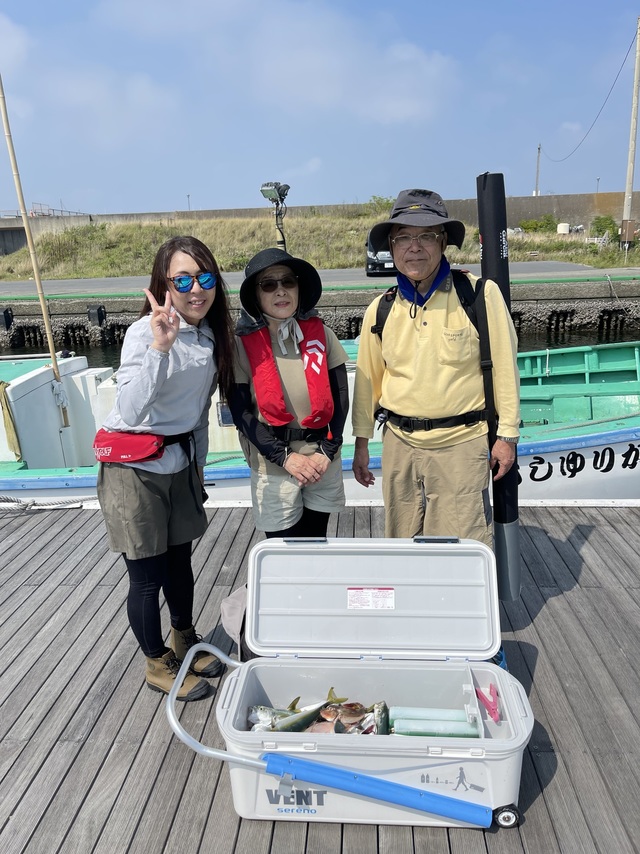 30~45cm 合計5匹 イナダ カンパチ 36~43cm 合計8匹 マダイ 40cm ハタ キジハタ ワラサ 80cm サバ 平均40cm 合計5匹 アジ 38cm ソーダガツオ ヒラマサ 本日はライトルアーで 出船しました。 今日は3名様でゆったり出船です。 天候は晴れ。 風は北から南。 潮は西⇔東へ流れる。 イナダ、 カンパチ 36cm〜43cm 船中8匹、 真鯛 40cm、 ハタ、 キジハタ、 ワラサ 80cm、 ホウボウ 30〜45cm 船中5匹、 サバ 40cm 船中5匹、 アジ 38cm、 ソーダカツオ、 などが釣れました 本日も外道多彩。 土曜日は五目で出船します。