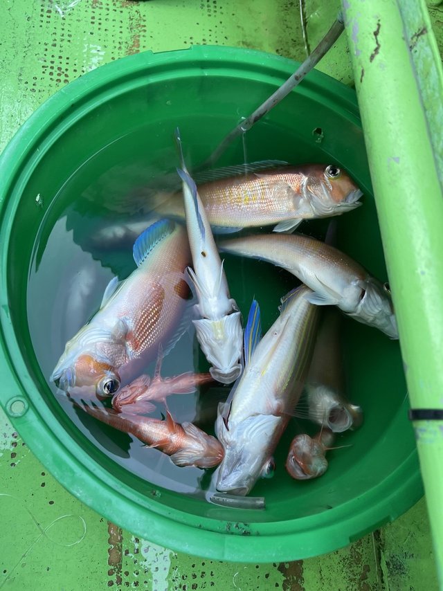 クロムツ 21~30cm 2~9匹 アマダイ 22~37cm 0~3匹 カゴカマス カガミダイ ユメカサゴ シロムツ カタボシアカメバル アラ ヒメコダイ イトヨリ サバ マアジ ムシガレイ 今日はLT中深場五目乗合船で出船しました! 朝からクロムツ顔見れてその後も誰かしらクロムツのアタリはありました! クロムツ釣れたりして全員クロムツ釣れたので良かったです!すぐに良型アマダイ顔出して他にもアマダイ釣れましたが、 その後なかなかアタリが出なくなりましたが最後の方にまた 顔見れて、本日ご乗船の皆様、ありがとうございました! またのご乗船をお待ちしております。